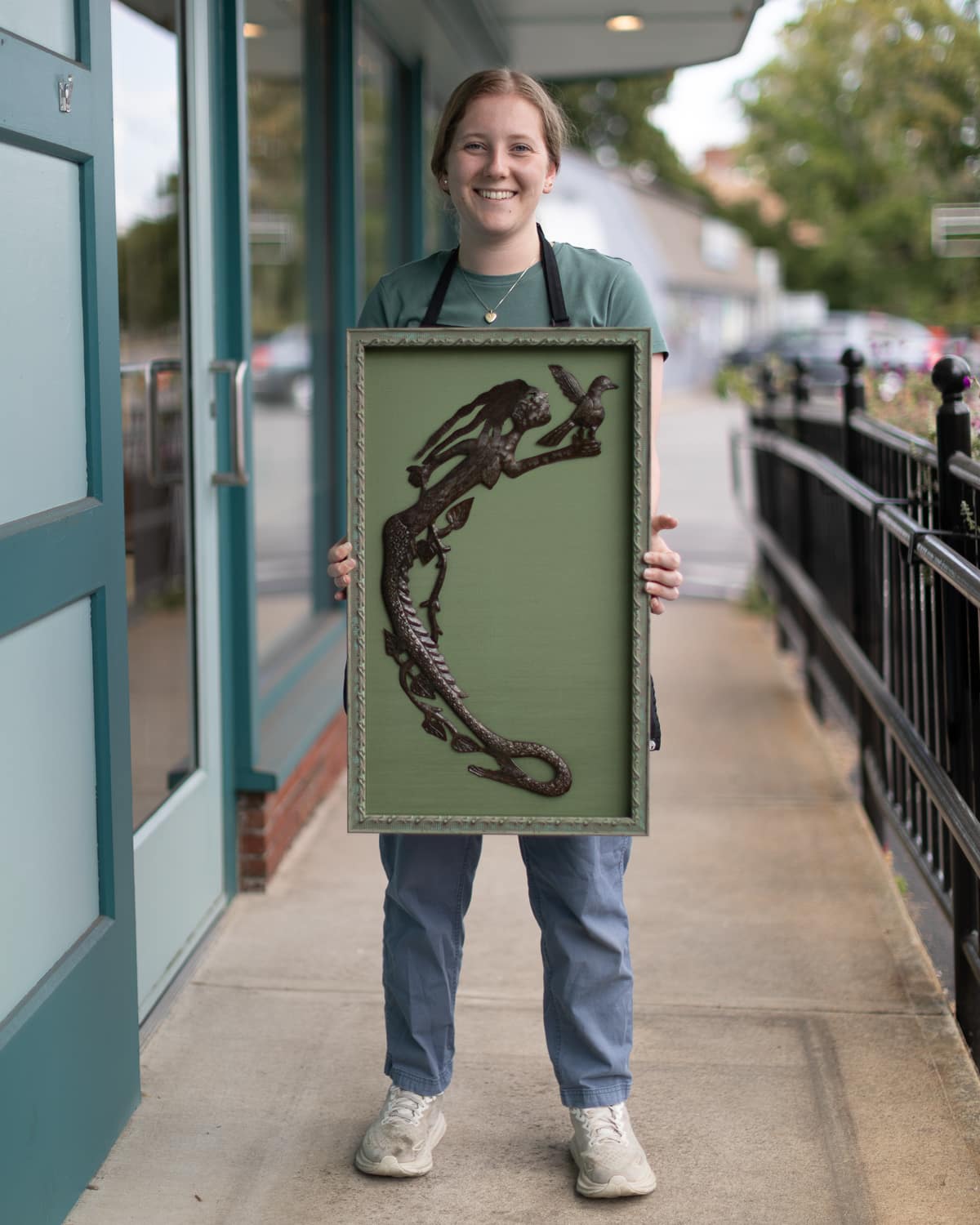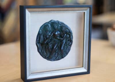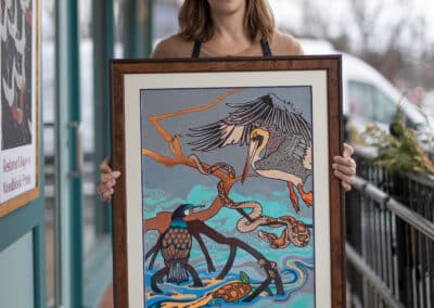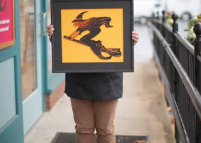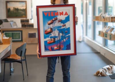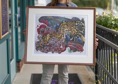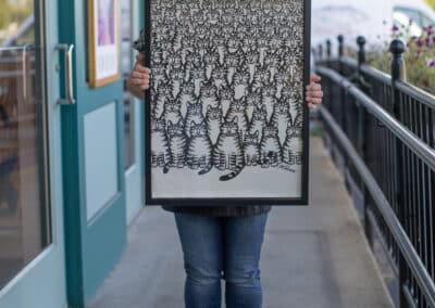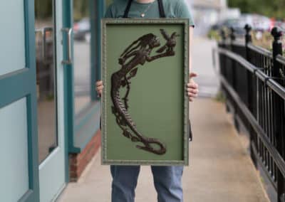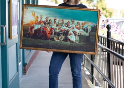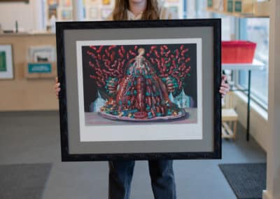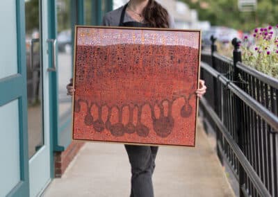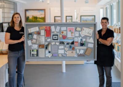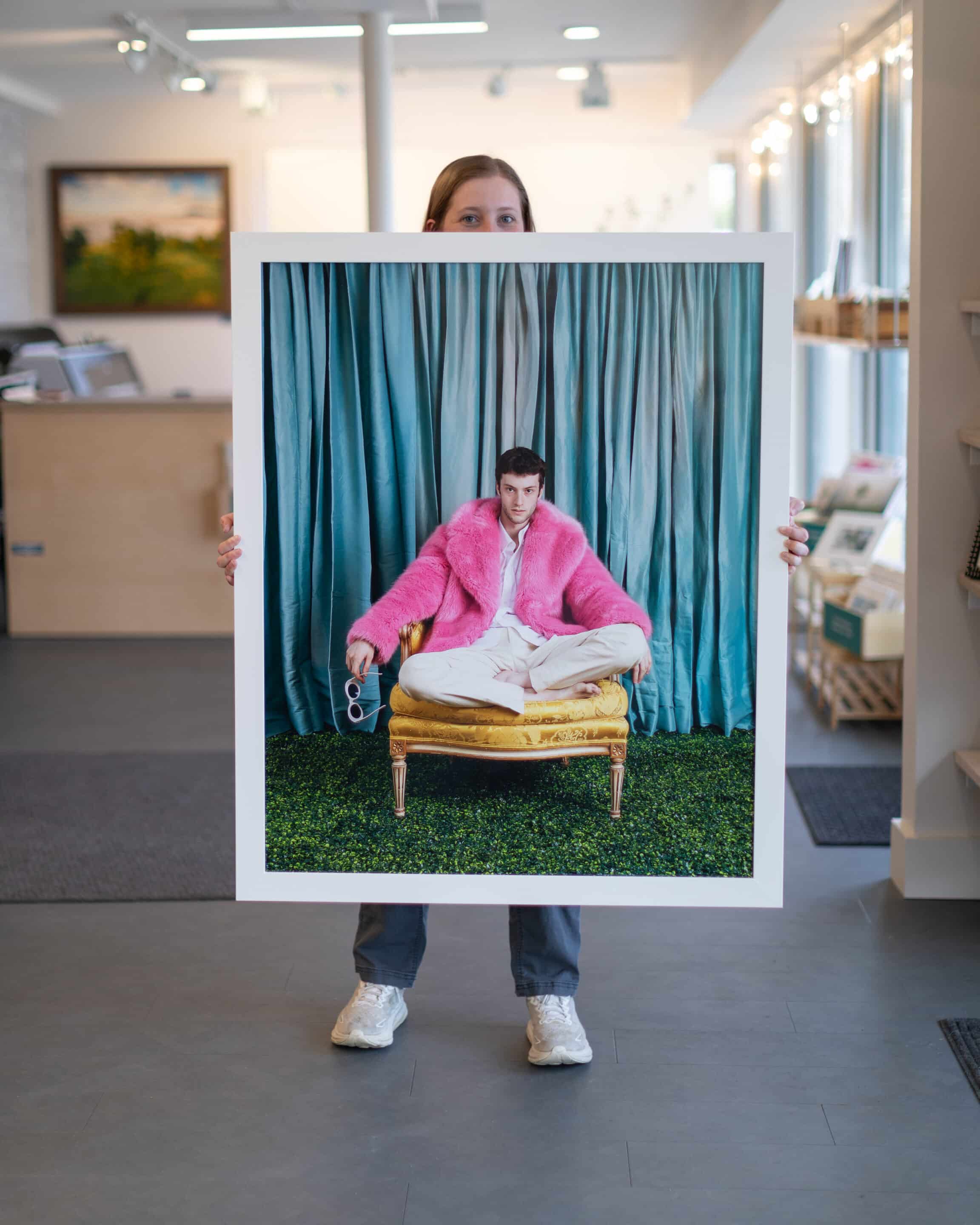 When you bring something into Hope and Feathers to be framed, whether it’s a print, painting, textile, or keepsake, a designer will help you choose materials that complement the piece and fit your style. Every element, from the frame molding to the mat board and glass, is chosen to fit that exact item. The result is something that looks intentional and is made just for you.
